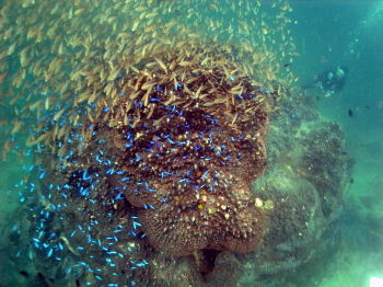 千年サンゴの周りは 本当にスゴイ群れ群れでした! サンゴが見えない〜〜〜 |