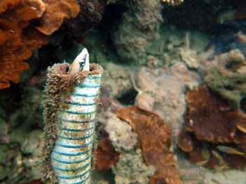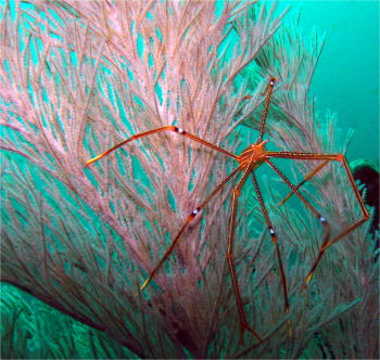 | ウミカラマツにオルトマンワラエビが ついていました! カニかクモに見えるけど やっぱりエビなんですね! |