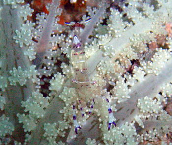 かと思えば、こんな綺麗な子も・・・ アカホシカクレエビは ペアでラブラブでしたよ。 |