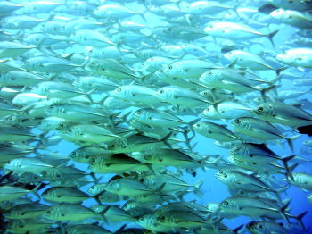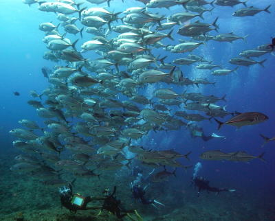 何とかゲストの皆さんとギンガメアジを押さえようと してみましたが・・・ ギンガメアジも、ゲストも納まりきりません! |
