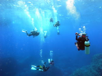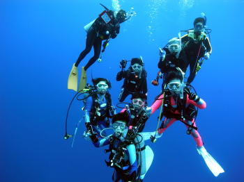 皆さんフリー潜降、フリー浮上のドリフトにも ばっちり対応! 中層で記念撮影です♪ |