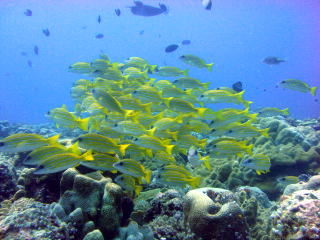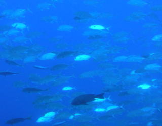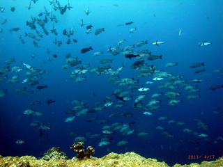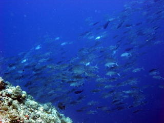 ![]() ブルーコーナーのコーナーで ギンガメアジも群れ群れ♪ |