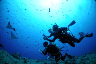 ![]() マダラトビエイとダイバーが素敵なコントラスト(^-^) |