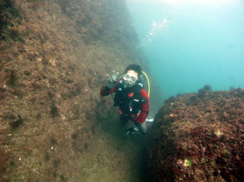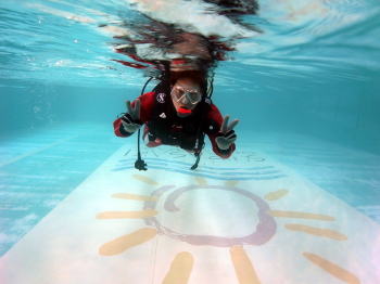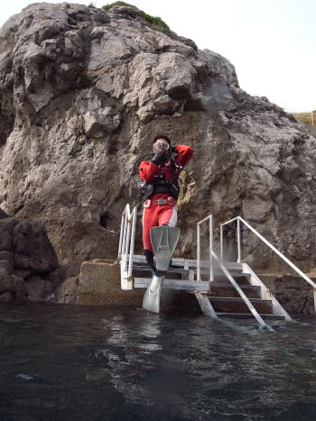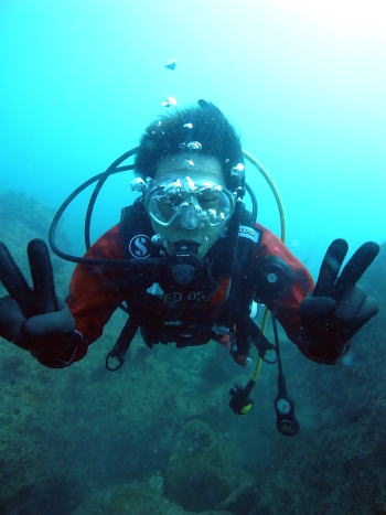 中性浮力でいぇい! ドライスーツも完璧に着こなしています! |