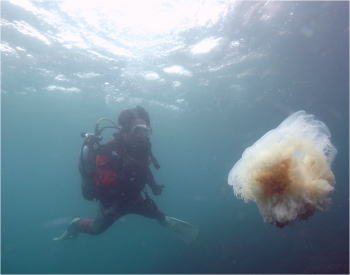 大きなクラゲに遭遇! おおお〜〜〜! |