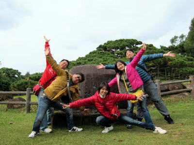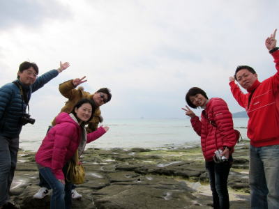 帰る日は島内観光! すっかり穏やかになった海を見ながら トンバラをバックにパチリ(*^。^*) |