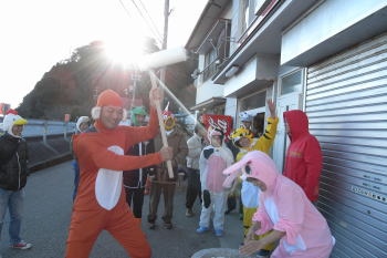 | ダイビング後は、お餅つき! なんだか動物がいっぱいの餅つきです。 |