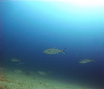いきなりのカンパチの群れ! 砂地で暴れるのはやめて〜 と、ちょっとだけ思うのでしたが |