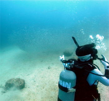 | 深いところはちょっぴり冷たかったですが 生物はさまざまHOTな 柏島です! |