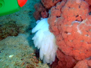 | アオリイカはこんなところにも卵を産んでいましたよ。 孵化までもう少しありそうです。 |