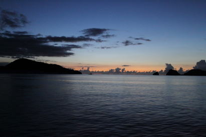| 1年ぶりのダイビングだったOさんの陸上写真! 沈む夕日に染まる海と空がほんとキレイです! |