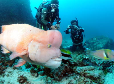 | 勤崎のコブダイ様♪♪ カーンの15周年のお祝いに駆けつけてくれました!! コブダイと一緒に写っているKさんが 大接近で撮影した写真が ↓↓↓ |