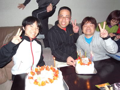 | 夜にはケーキでお祝いしました! 400本ケーキの方が大きい? 気のせいでしょー(笑) |