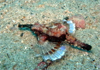 | さて、 そのほかに見た子たちをご紹介! 砂地でお散歩中のウミテング。 不思議な形です。 |