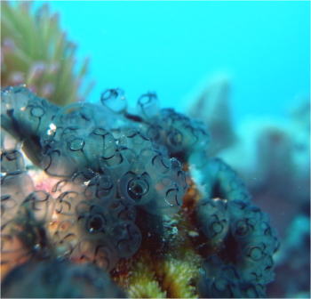 | あちらこちらにサンゴの根と スカシテンジクダイの群れ。 贅沢ですなあ〜 |