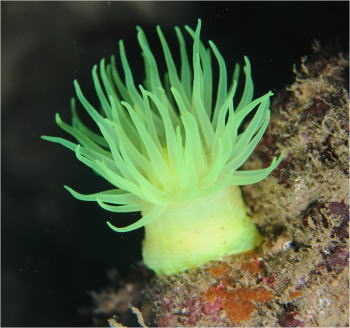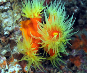 この子がオオカワリギンチャクです! 水深30mからすっきりと広がる オオカワリギンチャク畑も見えましたが。 今回はマクロなのでこんな風に。 |