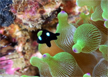 かわいいといえばチビ子! ミツボシクロスズメダイの幼魚は 今が旬! |
