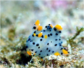 ミドリリュウグウウミウシは やたらたくさん?!いましたよ。 沈船で一番たくさん見たウミウシです。 まるで粘土細工みたいですよね。 |
