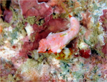 | さて、今回マクロで通されたSさん。 水中で綺麗に目だっていました! 決して、オオカワリギンチャクの子供とかでは ありませんよ〜(^○^) |