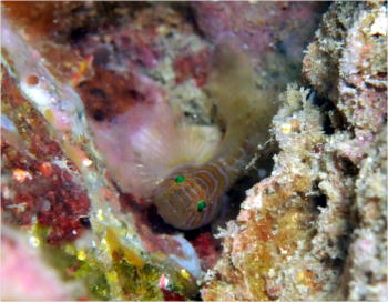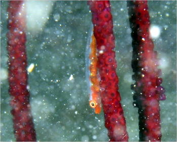 | 期間限定でオープンしているアンドの鼻では こんなかわいらしいハダカハオコゼも見つかっています♪ 左側にかわいいお目目が見えますか? |