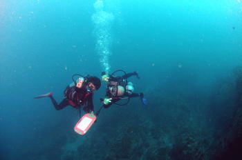 | アドバンス講習だったTさん。 腰が・・・といいながらも 楽しく5ダイブ♪ クルクル回転中!余裕ですね〜 |