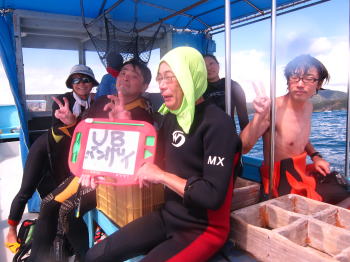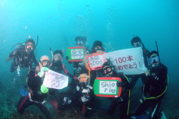| Iさんは見事100本記念♪ おめでとうございます〜! これからもダイビングを 続けていってくださいね。 感動はさらに広がりますよ〜 |