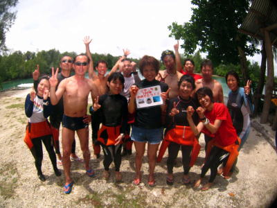 | 休憩で上陸したペリリューで記念撮影です! 素敵な時間のオンパレードでしたね(^_-)-☆ |