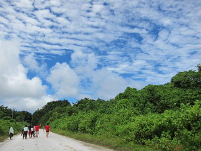 ちょっと皆でペリリュー島をお散歩〜♪ 青い空、きれいな緑、真っ白い雲 素敵なコントラストでした! |