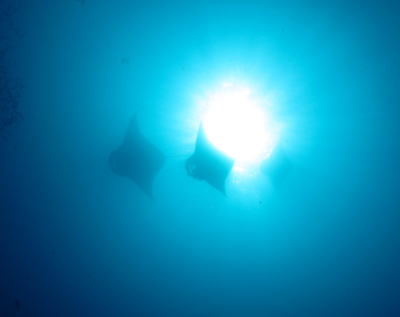 最後の最後に現れてくれました 愛しのマンタ様♪ 上空を舞う3匹のマンタ 幻想的なきれいな景色でした! |