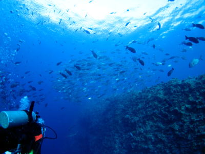 ラストダイブは、流れの弱くなったブルーコーナーで インドオキアジの大群が群れていました! 何回潜っても飽きることのないパラオの海♪ また来年!とコーナーを跡にしました。 |