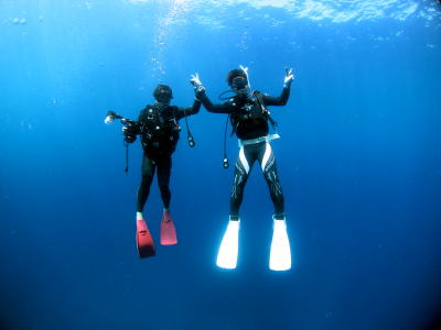 | 現地集合のKさん親子♪ ライセンスを取ったばかりの息子さんと 楽しそうに潜っておられました(*^。^*) |