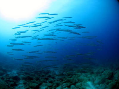 後浜や民家下では カマスのたいぐーん(*^。^*) その数は数100匹!!! なかなか大迫力でしたよ〜♪ |