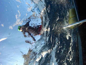 | こんな風に、水中から船長さんが見えちゃいます! 空も青くていい感じ〜♪ |