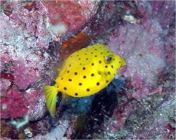 まだ元気だったミナミハコフグの幼魚! もひとつ小っちゃい子もいましたよ。 |