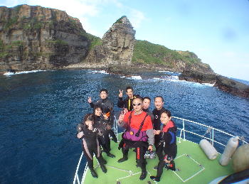 | エキジット後、特別に連れて行って下さった 立神岩! 海上から眺めることなんて めったとできません! ありがとうございました!!! |
