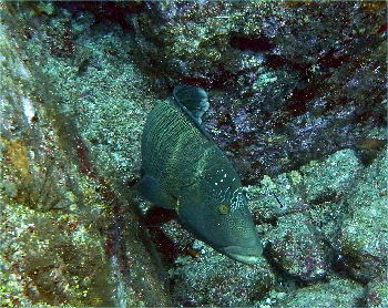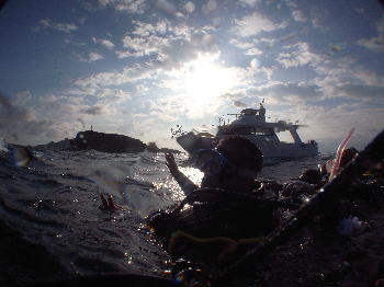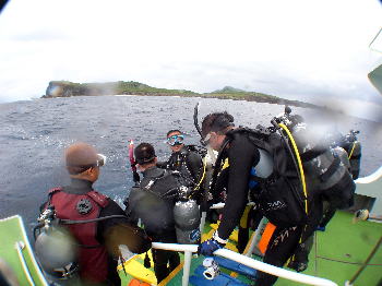 | 今回は、南の根につかまってみました! 水深27m! 目の前で、イソマグロがグルグル 巨大マダラエイも登場! すこーし流れがありました。 |