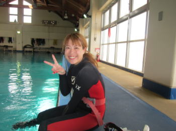 快晴 真夏日の水曜日 Mさんとマンツーマンで 白崎へ海洋実習に行ってきました〜! まずはプールでスキルの練習からスタートです♪ |