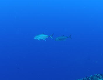 そこへ現れた2匹のギンガメアジっ! 来年は大群で見たいなぁ(^○^) |