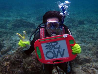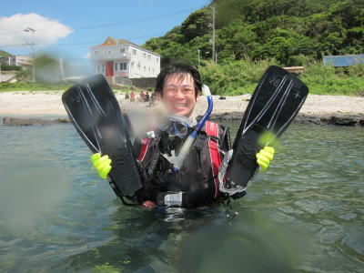 そして、最後は 「たっせいかーん!!!」と満面の微笑みです\(^o^)/ OW取得おめでとうございます(^-^) これからも楽しい海と、楽しい時間を ご一緒しましょうね〜♪ |