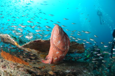 なんとダイバーになったばかりの 初ファンダイブのKさんが見てしまったのは〜 アオウミガメさんでした〜っ(*^_^*) いきなりの出会い、超ラッキーでしたね〜っ! |