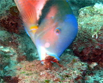 | 衝撃はイラの捕食シーン! 哀れノコギリガニさんはイラのお口へと・・・ ガリガリガリと、出しては咥え、咥えてはかじり。 食べちゃった(+o+) |