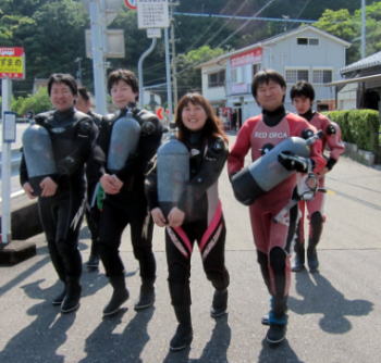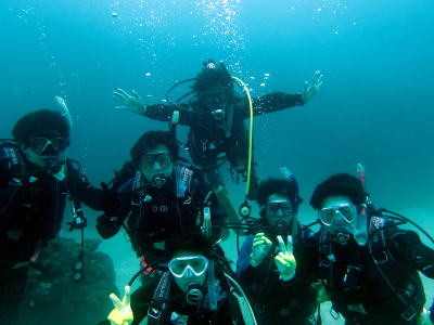 | 一足お先に帰られたお二人も ご参加有難うございました(*^_^*) これからダイバーになる皆さんと 「4引く2は?」の掛け声に大爆笑の皆様です! |