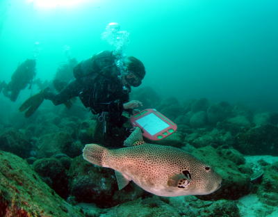 | 巨大モヨウフグもいましたよ! 愛嬌のある姿がなんとも言えませんっ(≧▽≦) |