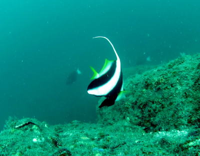 南の海のハタタテダイと 温帯エリアのニザダイやメジナが 一緒に泳いでいる海 |