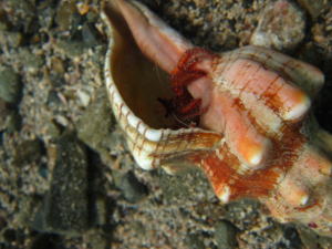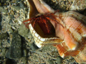 | ここからは、ヤドカリさん特集です。 皆さん、講習1ダイブ目にして、ヤドカリの戦いと 貝からでてきたヤドナシのヤドカリさんを目撃してしまいました〜っ! ![]() ![]() まずは飛び出してきたヤドカリさん おもむろに貝に乗っかって〜 |