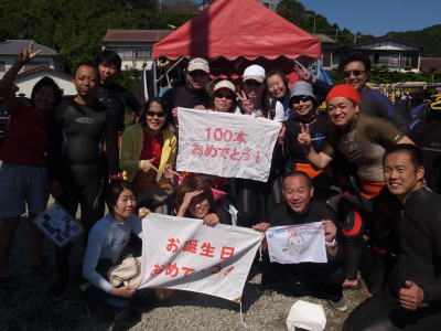 水中で、お祝いの記念撮影です! Iさん これからも200本、300本・・・500本と そして、○○歳・・・60歳、70歳と 潜り続けてくださいね〜(^_-) おめでとうございます!! |
