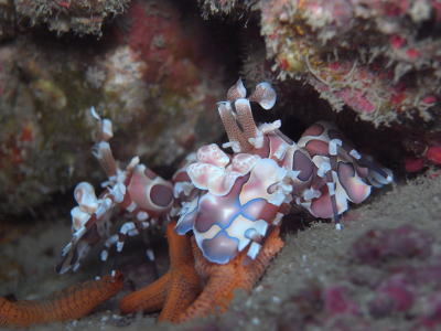 | フリソデエビのペアも あちこちで見られていますよ(^-^) ヒトデをむしゃむしゃ食べています! |