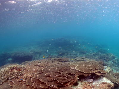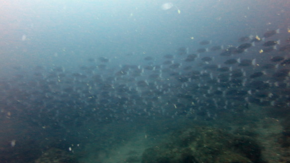 | ファンダイブチームは こーんなメジナの大群にでくわしたそうですよ〜!! マダラトビエイを見られた方もおられました(^○^) ラッキーでしたね〜っ! |