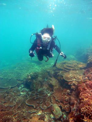 | ビーチでは中性浮力もばっちり〜♪ サンゴの上をフワフワ〜(^○^) その調子ですよ〜っ!! |