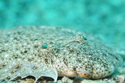 サンビラの漁礁もマクロレンズだとこんな感じに ヒラメをドアップで〜(*^。^*) かわいい表情狙ってくださいね! |